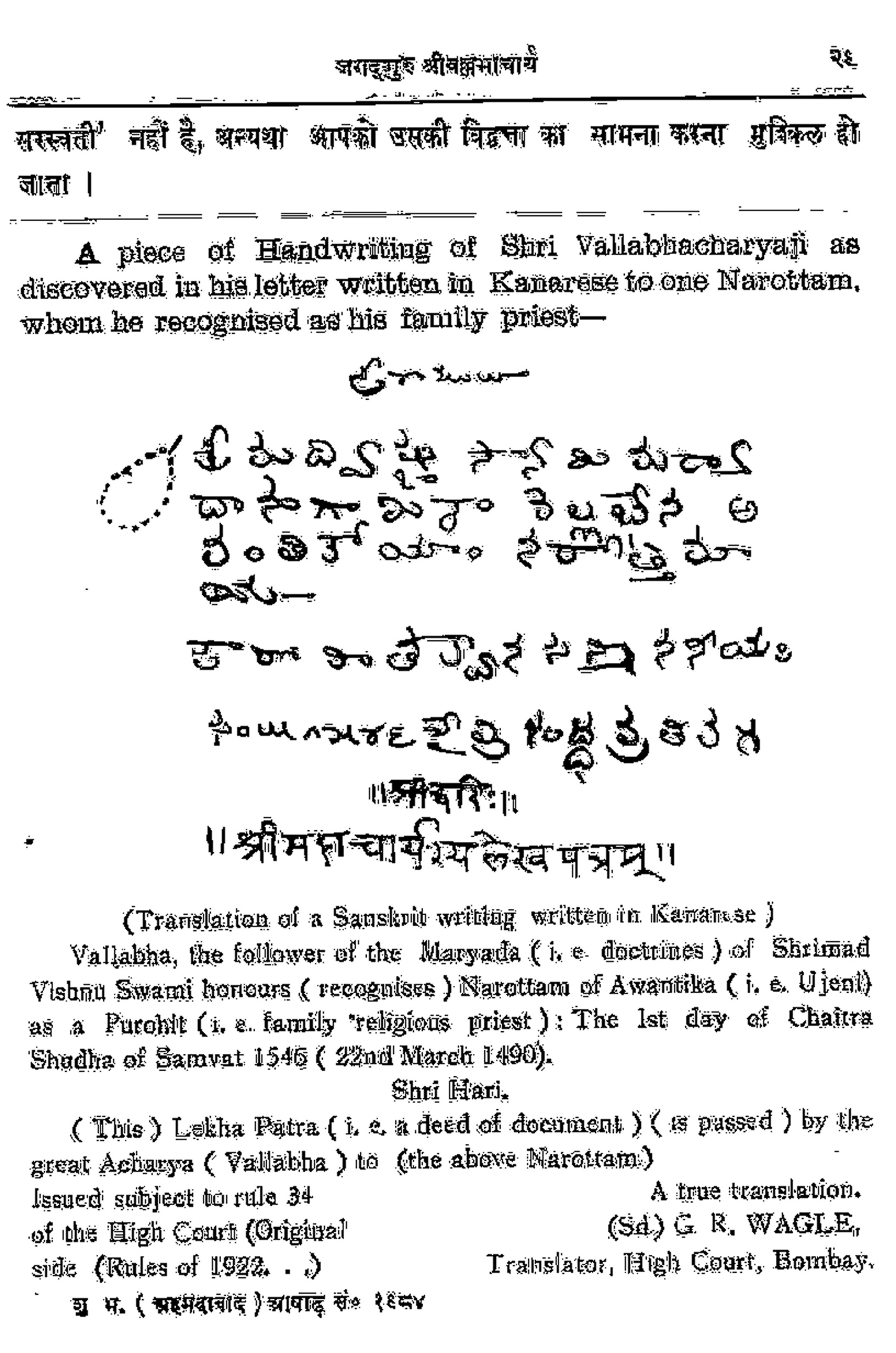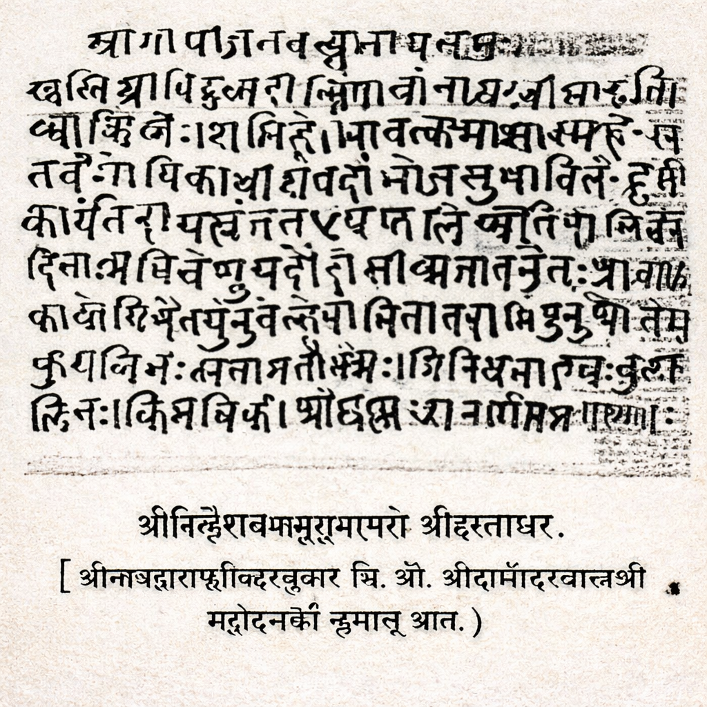 We all know that the only media for contacting our Param Pujya Acharyas during their absence in this world are books, paintings and Hastakshar (Handwriting). Out of these three the original ‘Hastakshars’ are the closest ones by darshan of which we reach our Acharyas. Hence, we have thought it necessary to give the same on our site. The hastakshars are as holy and respectable as the personality. Such hastakshars are not available to vaishnavas at large this being rare and kept respectfully and secretly by those who have the possession. By having a darshan of the hastakshars we feel the presence of the personality before us and have sentiment of dedication in our heart.